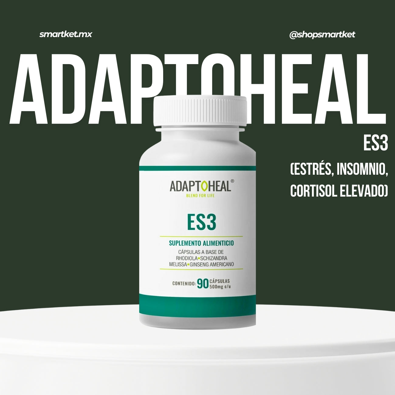 Suplemento alimenticio formulado con adaptógenos y plantas funcionales tradicionalmente utilizados para apoyar la respuesta del cuerpo al estrés físico y mental.