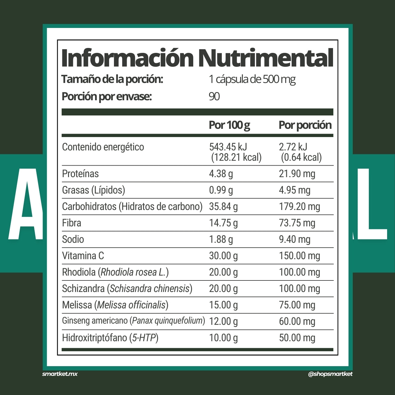 Tamaño de la porción: 1 cápsula (500 mg c/u)
